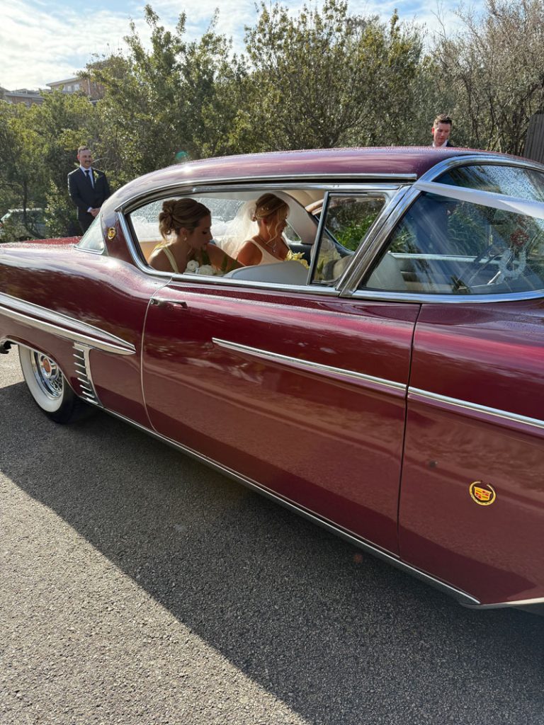 This impeccable classic Cadillac Limousine can be hired on its own or as a bridal party car, as it perfectly matches our Rosie (1959 Rose Pink Pearl Convertible) and can accompany any of our Cadillacs.