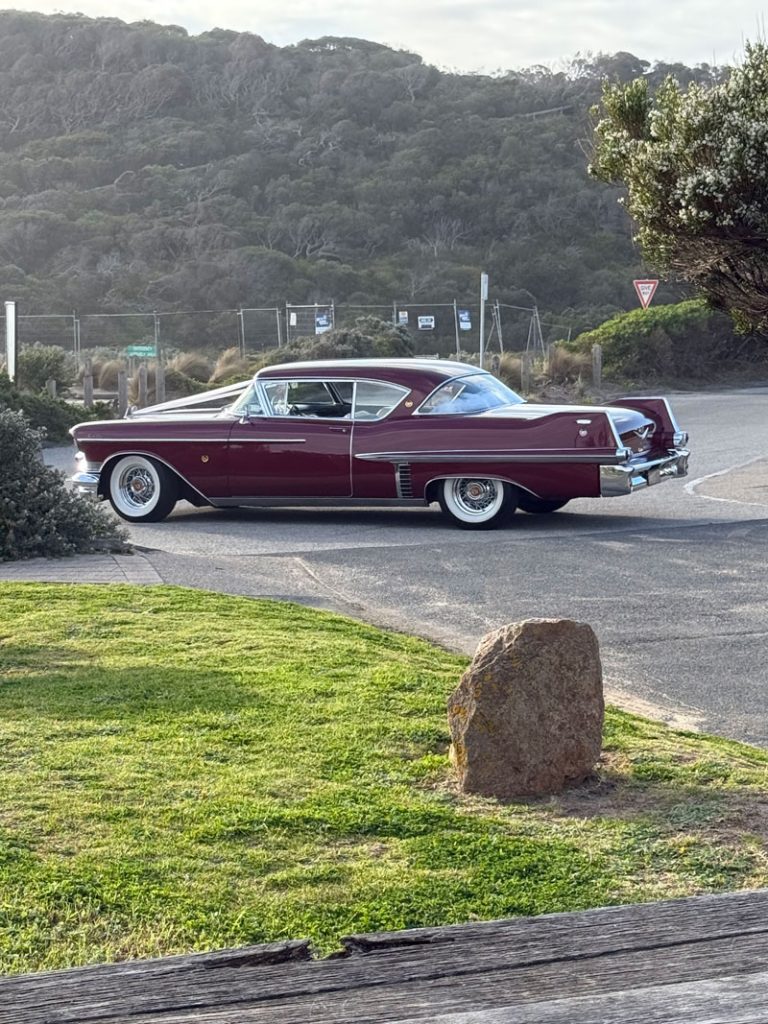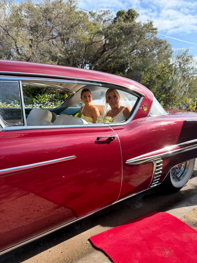 Meet Ellie Mae, a truly stunning 1957 Series 2 two-door coupe with outstanding chrome together with the deep rich red mirror paintwork, classic chrome Hotwire Cadillac wheels with white wall tyres. Ellie Mae is a true reflection of American nostalgia and one of Elvis Presley’s favourite models. Sporting luxurious white trimming with stunning window views all round, makes her a stunning showpiece for all weddings, movies and photo shoots. Ellie Mae is a spacious comfortable ride equipped with air conditioning and heating, while offering plenty of room ensuring both a glamorous entrance and comfortable ride. This is an amazing fully restored classic to the highest degree, especially with the bright white interior. An absolute stunner. Arrive in style and class in this amazing 1957 Cadillac making a true stand out in any event.